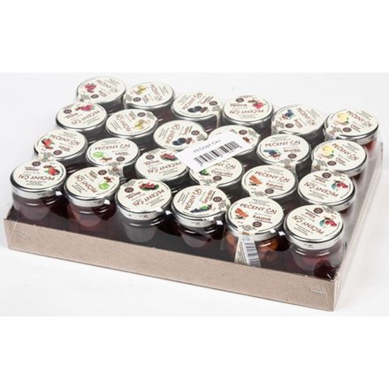 - mix různých druhů čajů viz. etiketa výrobku (např. Višeň se sladidly_Složení: višně 55%, voda, jablečný koncentrát, cukr, zahušťovadla: xanthan, guar, alginát, kyselina jablečná, aroma, barvivo: E120, konzervant: sorban draselný, sladidlo sukralóza; Hruška se skořicí_Složení: hrušky 45%, voda, hruškový koncentrát 15%, cukr, aroma, kyseliny: jablečná, citronová, zahušťovadla: xanthan, guar, alginát, skořice 0,09%, konzervant: sorban draselný, antioxidant: tascorban sodný, sladidlo: sukralóza, Broskev se skořicí_Složení: broskve 48%, voda, jeblečný koncentrát, cukr, aroma, kyseliny: jablečná, citronová, zahušťovadla: guar, xanthan, alginát, konzervant: sorban draselný, skořiče 0,1%, barvivo: betakaroten, antioxidanty: ascorban sodný, disiřičitan sodný.)