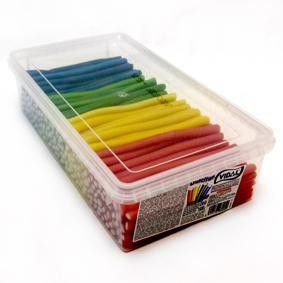 - cukr, glukózovo-fruktózový sirup, sirup z invertního cukru, PŠENIČNÁ mouka (obsahuje LEPEK); kukuřičný škrob, palmový tuk, zvlhčující látka: E422; kyseliny: E330, E296; bramborový škrob, želatina, emulgátor: E471; aromata, kokosový olej, olej z palmových jader, kokosový tuk; rostlinné koncentráty: černý rybíz, karotka; barviva: E100, E120, E133 Hmotnost netto: 8 g