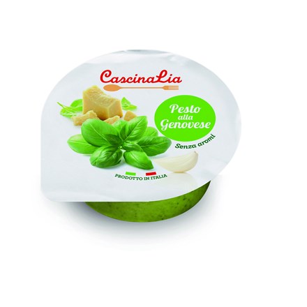 - olej ze slunečnicových semínek, bazalka 25%, KEŠU ořechy, sůl, extravirgin olivový olej 2%, strouhaný SÝR (MLÉKO, sůl, syřidlo), Pecorino Romano PDO SÝR (ovčí MLÉKO, sůl, syřidlo), piniové ořísky, česnek 0,3%, rostlinná vláknina, fruktóza, regulátor kyselosti: kyselina L-askorbová