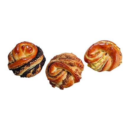 - Složení: pšeničná mouka, voda, cukr, olej řepkový, droždí, vaječná melanž (vejce, regulátor kyselosti: kyselina citronová), sůl, uni pek (pšeničná mouka, pšeničný lepek, enzymy, látka zlepšující mouku: kyselina askorbová). Náplň 30% tvarohová: best krém (cukr, modifikovaný škrob, syrovátka, palmový olej, mléko, stabilizátor: citronan sodný, emulgátor: E471, E481, E472e, glukóza, sequestrant: fosforečnan sodný, zahušťovadlo: alginan sodný, síran vápenatý, stabilizátor: fosforečnan sodný, sůl, aroma, barviva, riboflavin, karoteny, vaječná melanž (vejce, regulátor kyselosti: kyselina citronová), cukr. Posyp: vaječná melanž (vejce, regulátor kyselosti: kyselina citronová).
