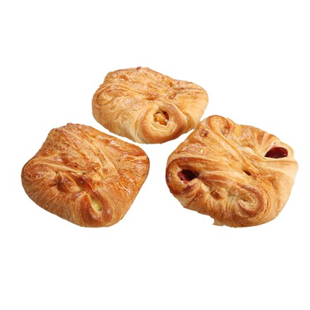 - Složení: pšeničná mouka, voda, tažný margarín (olej – palmový, řepkový, voda, emulgátor: E471, sůl, regulátor kyselosti: kyselina citronová, konzervant: sorban draselný, barviva: E160b, aromata), zlepšující přípravek: cukr, pšeničný lepek, pšeničná mouka, odstředěné sušené mléko, sůl, sušená vejce, stabilizátor: guma guar, emulgátor: E471e, aroma, látka zlepšující mouku: kyselina askorbová, deaktivované droždí, enzymy, droždí, cukr, stolní margarín (olej - palmový, kokosový, částečněztužený palmový tuk v různém poměru, voda, emulgátor: mono- a diglyceridy mastných kyselin, lecitiny, regulátor kyselosti: kyselina citronová, aroma, barvivo: karoteny).Náplň 21% tvarohová: best krém (cukr, modifikovaný škrob, sušená syrovátka, palmový olej, sušené odstředěné mléko, sušené plnotučné mléko, stabilizátor: citronan sodný, emulgátor: E471, E481, E472e, glukóza, sequestrant: fosforečnan sodný, zahušťovadlo: alginan sodný, síran vápenatý, stabilizátor: fosforečnan sodný, jedlá sůl, aroma, barviva, riboflavin, karoteny), vaječná melanž (vejce, regulátor kyselosti: kyselina citronová), cukr. Náplň 21% ovocná: (jahoda 35%, cukr, voda, jablečné pyré zahuštěné (15% ovoce), zahuštovadlo: modifikovaný kukuřičný škrob, guma gellan, regulátor kyselosti: kyselina citronová, citronan vápenatý, citronan sodný, konzervant: sorban draselný, aroma, koncentrát z černé mrkve, modifikovaný kukuřičný škrob).Posyp: vaječná melanž (vejce, regulátor kyselosti: kyselina citronová).