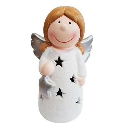 - Dekorace porcelánový LED andílek s hvězdou 8,5x6,3x13,5 cm
