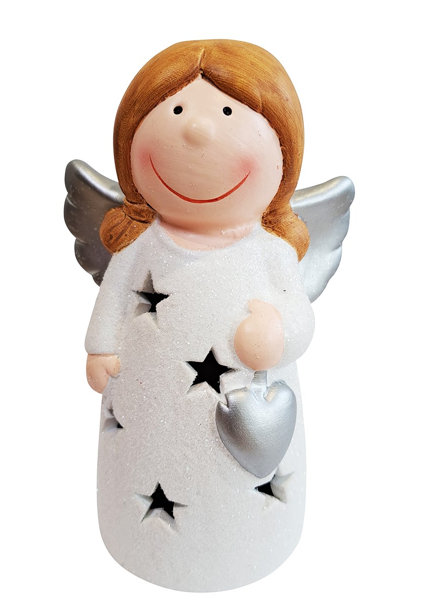 - Dekorace porcelánový LED andílek se srdcem 8,5x6,3x13,5 cm