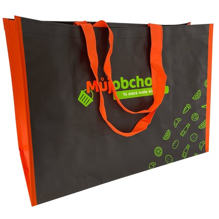 - Trvanlivá odnosná taška, opakovatelně použitelná s výrazným brandem "Můj obchod"
