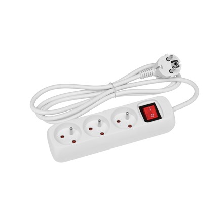 - Standardní prodlužovací kabel bílé barvy pro vniřní použití. Je vybaven kolébkovým vypínačem a dětskými clonkami. Zásuvka a vidlice je vyrobena z plastu, izolace z PVC.