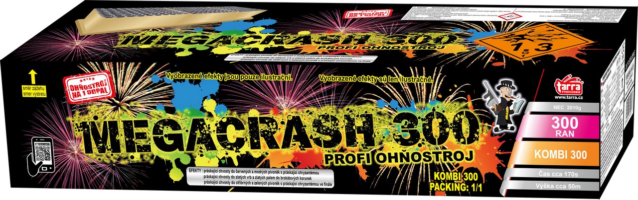 - EFEKTY : práskající chvosty do červených a modrých pivoněk s práskající chryzantémou, práskající chvosty do stříbrných a zelených pivoněk s práskající chryzantémou, práskající chvosty do zlatých vrb a zlatých palem s brokátovými korunkami ve finále