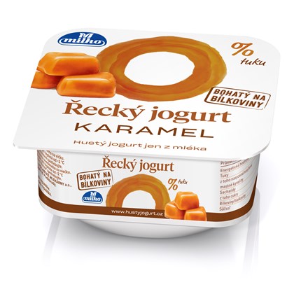 - jogurt odtučněný (mléko, jogurtová kultura s Bifidobacterium BB-12), ochucující složka 16% (karamelový sirup, mléčný karamel, cukr, aroma)