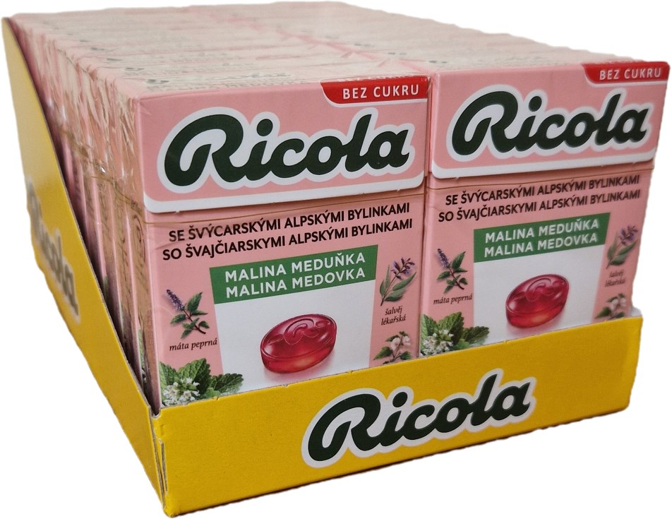 Ricola Malina Meduňka Bonbóny bez cukru 20 x 40 g