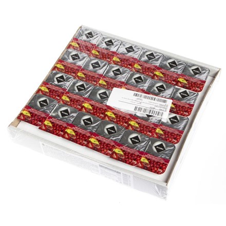 - cukr, jablka (25 % hm.), rybíz (20 % hm.), regulátor kyselosti: kyselina citrónová, želírující látka: pektin, koncentrát z černé mrkve, aroma, stabilizátor: chlorid vápenatý. Výrobek obsahuje zbytkový konzervant (OXID SIŘIČITÝ) ze suroviny. Ve 100 g výrobku je obsaženo 70 g přírodních sladidel. Pro výrobu 100