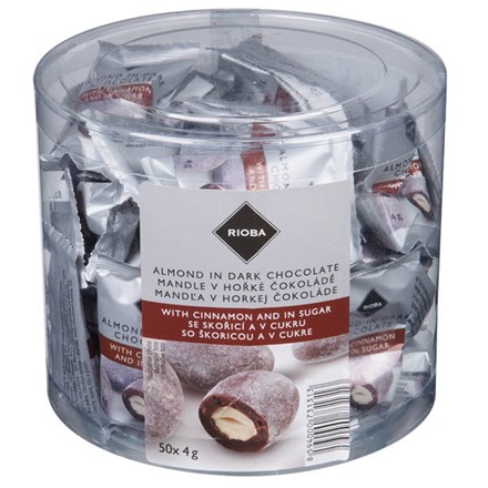 RIOBA Mandle v hořké čokoládě se skořicí 50 x 4 g