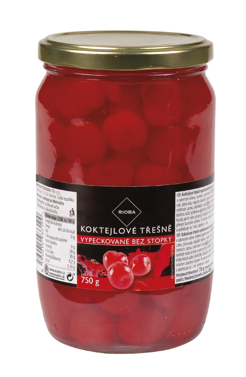 - Třešně, cukr, pitná voda, regulátor kyselosti: kyselina citrónová, barvivo: erythrosin, aroma, antioxidant: oxid siřičitý