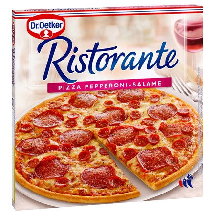 - PŠENIČNÁ MOUKA, 15% pasírovaná rajčata, 15% SÝR (MOZZARELLA, SÝR EIDAM), 9,0% pikantní salám (vepřové maso, slanina, sůl, koření, dextróza, česnekový prášek, cibulový prášek, extrakty koření, stabilizátor (dusitan sodný), antioxidant (výtažky z rozmarýnu), kouř), voda, 7,6% rajčatový koncentrát, 4,5% mini-salami (vepřové maso, slanina, sůl, koření, dextróza, cibulový prášek, česnekový prášek, extrakty koření, antioxidant (výtažky z rozmarýnu), stabilizátor (dusitan sodný), kouř), řepkový olej, pekařské droždí, sůl, cukr, extra panenský olivový olej, oregano, bazalka, pepř, paprika, petržel. Může obsahovat stopy (SÓJOVÉ BOBY, HOŘČICE).