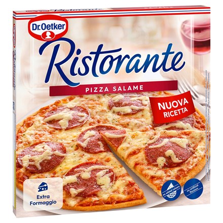 - PŠENIČNÁ MOUKA, 14 % pasírovaná rajčata, 12 % SÝR MOZZARELLA, 12 % salám (vepřové maso, slanina, jedlá sůl, koření, dextróza, cibulový prášek, česnekový prášek, extrakt koření, stabilizátor (dusitan sodný), antioxidant (výtažky z rozmarýnu), kouř), voda, 7,3 % rajčatový koncentrát, 4,6 % SÝR EIDAM, řepkový olej, pekařské droždí, sůl, cukr, extra panenský olivový olej, oregano, bazalka, pepř, paprika, petržel