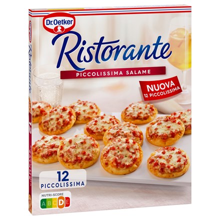 - Pizza Ristorante Piccolissima (italsky nejmenší) je nová kvalita mini pizzy na trhu.Mini pizzy Ristorante Piccolissima Salame jsou bohatě obloženy drobně nakrájeným jemným salámem a mozzarellou na rajčatové omáčce a tenkém křupavém těstě.Tenké křupavé těsto a bohatá obloha jsou zárukou úspěchu teplého pohoštění každé návštěvy nebo dětské oslavy.Ristorante Piccolissima je 12 lahodných kousků pizzy hotových do 10 minut po vytažení z mrazničky