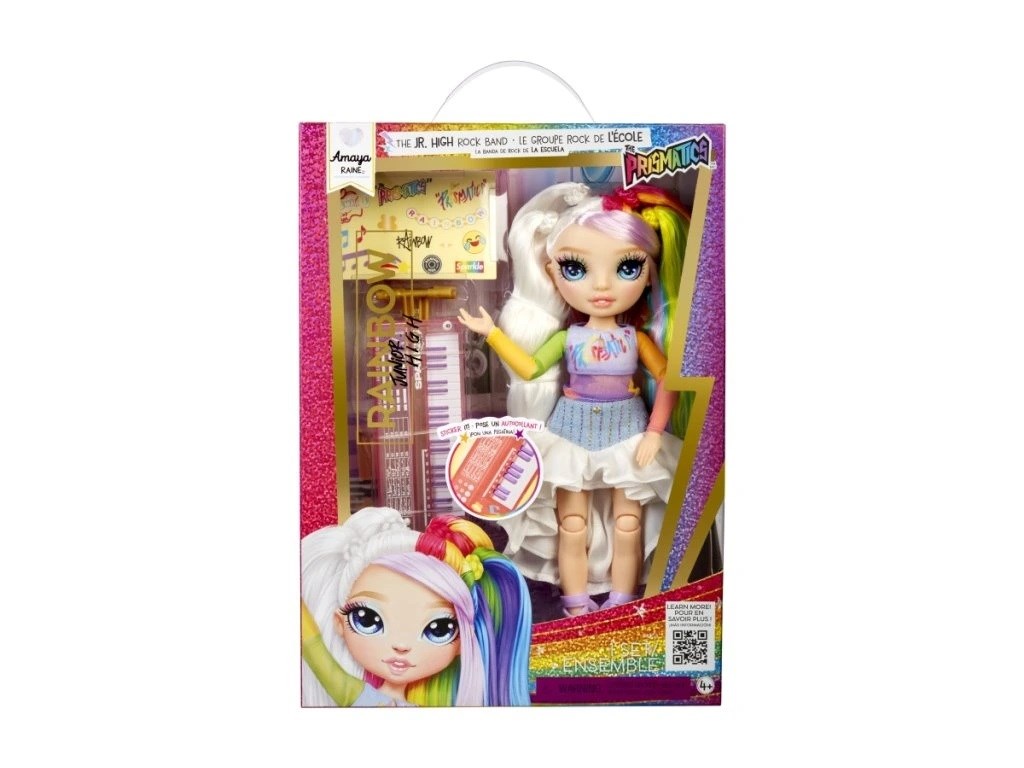 - Každá panenka z této série představuje talentovanou členku hudební kapely, která už v mladém věku září na pódiu. Amaya, vysoká přibližně 23 cm, vás oslní svým duhovým vzhledem a klávesami, na které s nadšením hraje. S pohyblivými klouby ji snadno nastavíte do různých pozic, aby se mohla předvést během epického koncertu. Díky veselým nálepkám je možné panenku personalizovat a dotvořit její jedinečný styl dle vaší fantazie.