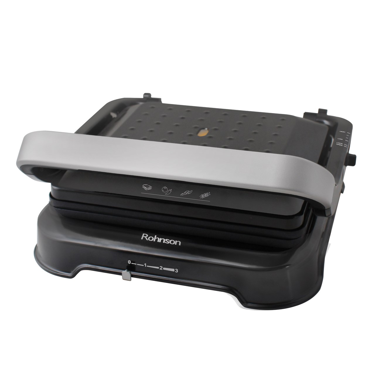 - Velké pečicí pláty 30 x 26 cm Lité pečicí pláty s nepřilnavým povrchem Příkon 2200 W max. pro rychlé pečení Nastavitelná regulace teploty se 3 úrovněmi a vypnutím Možnost grilování v otevřené pozici 180° Tepelně izolovaná rukojeť Světelné indikace provozu a připravenosti Odkapávací miska vhodná do myčky nádobí Možnost uskladnění ve svislé poloze