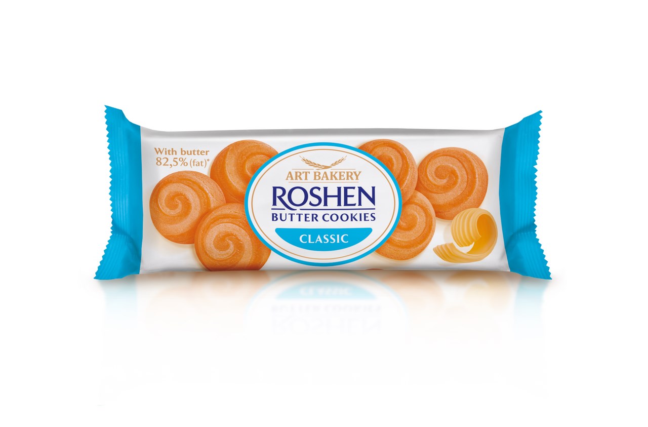 - Elegantní máslové sušenky s křehkou, křupavou texturou a hlubokou, bohatou krémovou chutí. Tyto sušenky se doslova rozplývají v ústech a zanechávají příjemnou dochuť pravého másla. Harmonicky spojují křehkost a křupavost a v každém soustu vytvářejí pocit domácího tepla. Obsahují 10 % pravého sladkého smetanového másla od ROSHEN s obsahem tuku 82,5 %