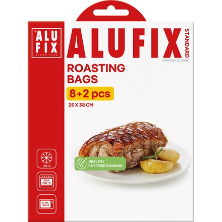 - Alufix sáčky na pečení nesmí chybět ve vaší kuchyni. Dokážou chutně upéct maso, ryby, zeleninu nebo pečivo. Sáčky uchovávají aroma, vitamíny i šťávu jídla a šetří kalorie. Sáčky jsou vyrobeny z tepelně odolné speciální fólie (do 200 °C), není třeba vymazávat tukem nebo olejem a proto je díky nim příprava pokrmů zdraví prospěšná. Pokrmy se na něj nelepí a snadno se po upečení vyndají. Jídlo zůstává obzvláštně chutné díky přípravě ve vlastní šťávě.