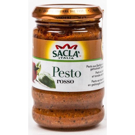 - Rajčatový protlak, slunečnicový olej, bazalka (10%), sušená rajčata 4% (oxid siřičitý), červené papriky, kešu oříšky, Grana Padano sýr (mléko, vejce), Pecorino Romano CHZO (ovčí mléko), sůl, extra panenský olivový olej, piniové oříšky, mrkev, česnek, regulátor kyselosti: kyselina mléčná.
