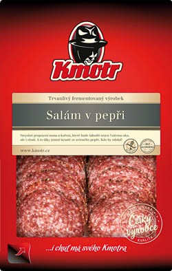 - Salám v pepři. Masný výrobek trvanlivý fermentovaný. Baleno v ochranné atmosféře.