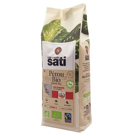 - SATI Perou Paraiso Inca Bio Fairtrade. Tato 100% Arabica z Peru představuje vyvážený, hladký a jemný šálek. Nadmořská výška nad 1350 m n.m. a místní klima mu dodávají příjemnou perzistenci v ústech a velmi zajímavou chuť, ke které se přidávají tóny citrusů, lískových oříšků a čokolády. Zcela recyklovatelný obal bez hliníku. Les Cafés Sati je francouzská rodinná a nezávislá společnost, založená v roce 1926 ve Štrasburku v Alsasku.