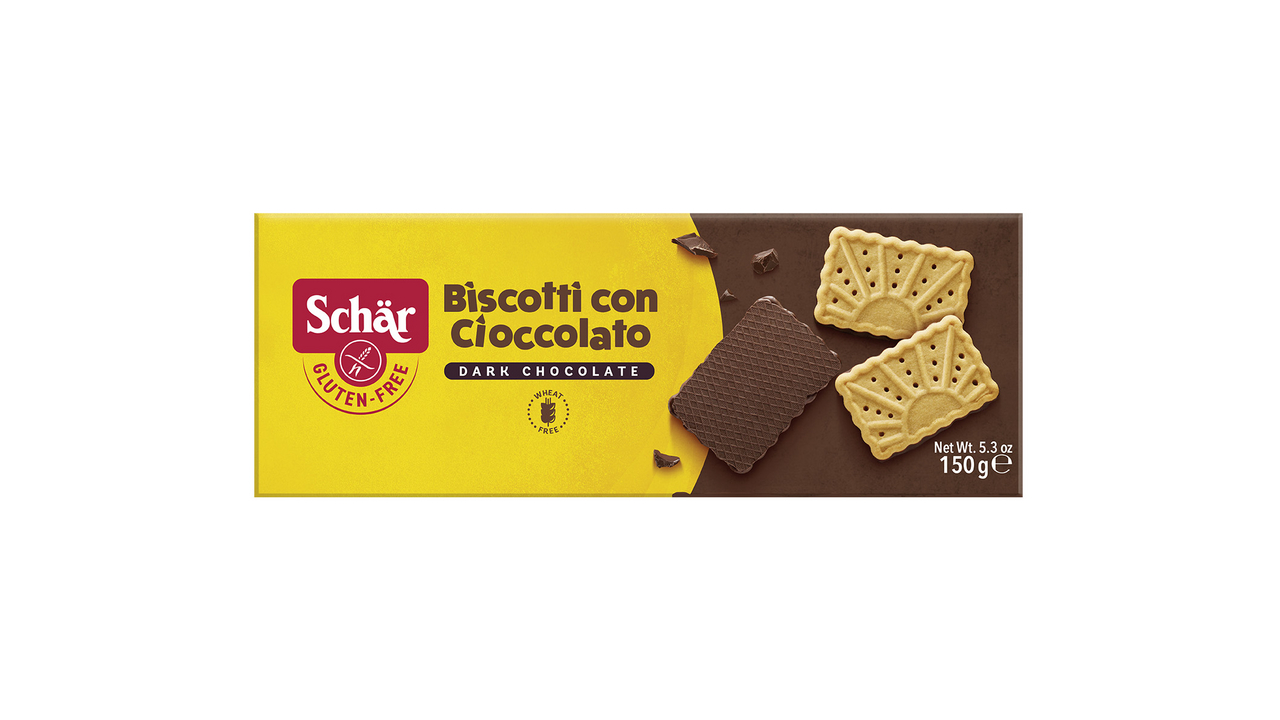 Schär Biscotti con Cioccolato sušenky bez lepku polomáčené v hořké čokoládě 150 g
