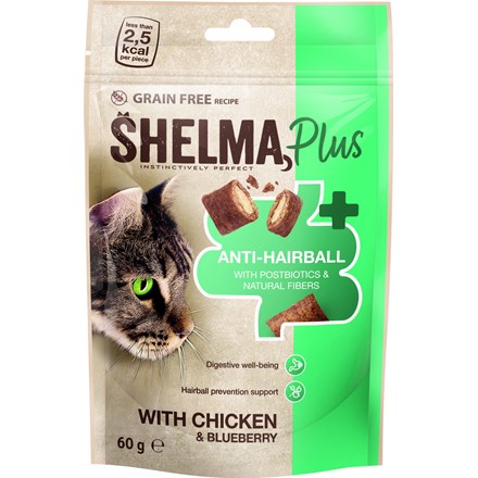 - Shelma snack GF kočka Anti-hairball,polšt,maso,borůvka 60g