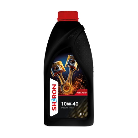 - SHERON 10W-40 je polosyntetický motorový olej, který je univerzálně použitelný v benzínových a dieselových motorech (v osobních a lehkých užitkových vozidlech). SHERON 10W-40 poskytuje stabilní mazací film při studeném startu i při nízkých teplotách a nabízí vynikající mazací film i při vysokých provozních teplotách. Obsah speciálního balíčku aditiv umožňuje motoru fungovat za všech podmínek a současně dosáhnout úspory paliva a snížení emisí výfukových plynů.