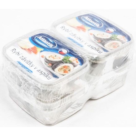 - Sleďové závitky 60% [marinovaný sleď obecný – Clupea harengus 60%, cibule marinovaná (cibule, kvasný ocet lihový, sůl), zelí bílé sterilované (zelí bílé, kvasný ocet lihový, cukr, sůl, antioxidant: disiřičitan sodný), mrkev sterilovaná (mrkev, kvasný ocet lihový, cukr, sůl)], aspik 39% (pitná voda, cukr, kvasný ocet lihový, želatina, sůl, konzervant: benzoan sodný), paprika sterilovaná (paprika, kvasný ocet lihový, sůl, cukr). Může obsahovat stopy celeru, mléka, vajec, hořčice.