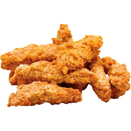 - kuřecí prsní řízek (61%), obalovací směs (34%) pšenicˇná mouka, sušené mléko odtučněné, sušená vejce, směs kypřících látek (E450, E500), barvivo(E100, E160a), voda, paprika a jeji extrakty (E160c), modifikovaný škrob(E1414), dextróza, stabilizátory(E451i, E452ii), jedlá sůl, zahušťovadlo: (E1412), stabilizátor: (E451), směs koření (jedlá sůl, smeˇs korˇení (su°l, korˇení, dextróza, aroma(chilli)), rostlinné tuky (palmové).