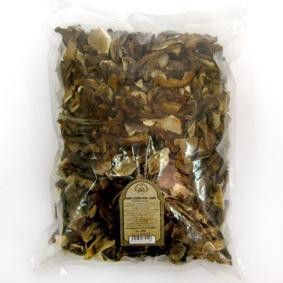 - Směs sušených hub v různém poměru: Klouzek obecný, Hlíva ústřičná, Kozák březový/habrový, Křemenáč březový/osikový, Hřib smrkový