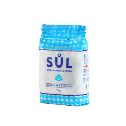 - jedlá sůl kamenná, jodičnan draselný obsah jodu: 20 - 34 mg/kg