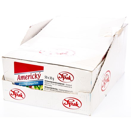 - pitná voda, 20 % řepkový olej, 10 % jogurt bílý, cukr, rajčatový protlak, kvasný ocet lihový, jedlá sůl, sušené odstředěné mléko, maltodextrin, hořčičné semeno, fermentovaná sója, jablečná šťáva, česnek, regulátor kyselosti: kyselina citrónová; paprika, stabilizátor: xanthan; koření, konzervanty: kyselina benzoová, kyselina sorbová; aroma.