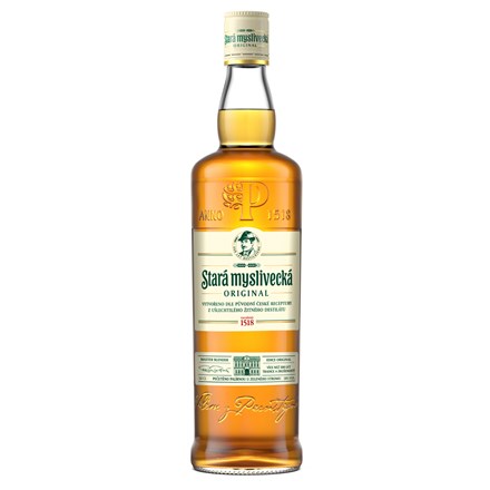 - Žitný destilát, Přírodní macerát z ovoce dle originální receptury Stará myslivecká, Barvivo: karamel
