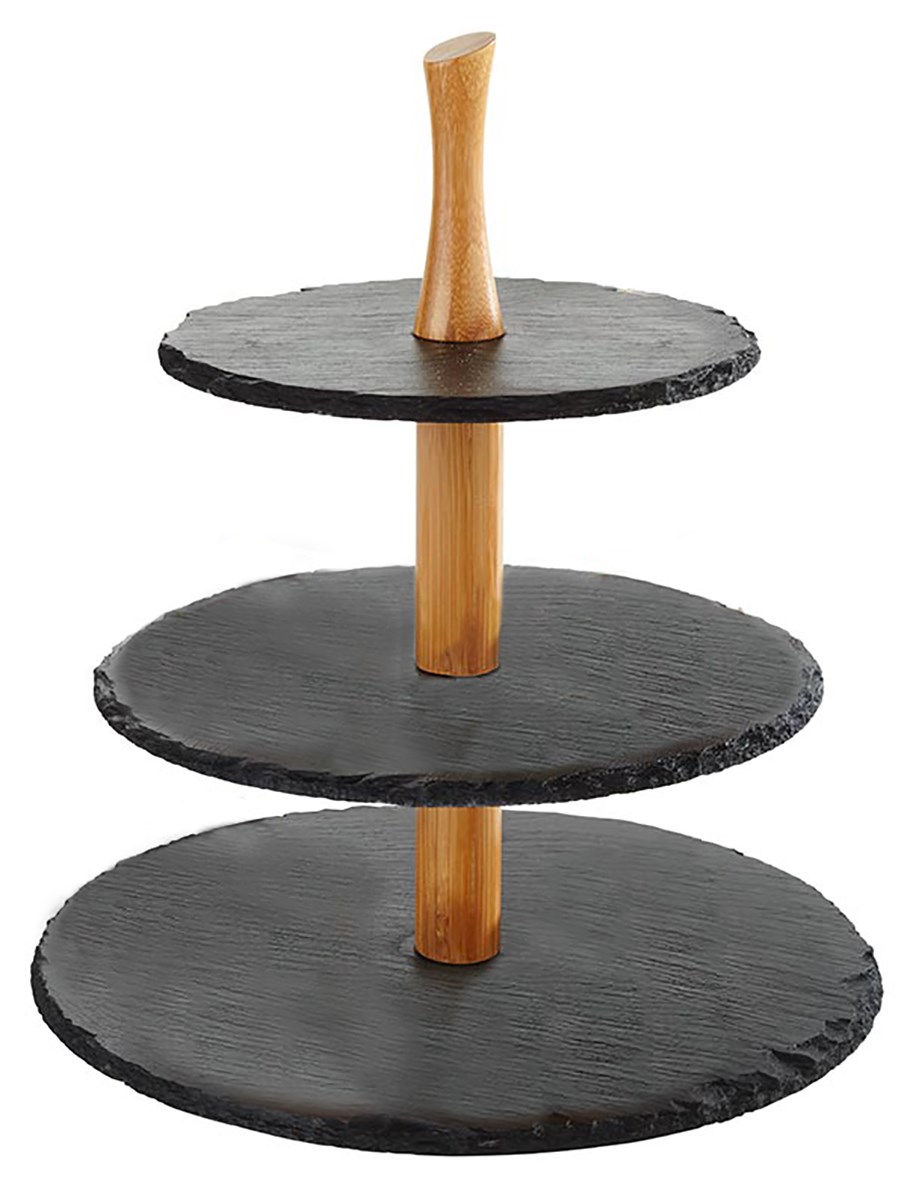 Stojan MORRA břidlice/dřevo 30 cm 3patra 1 ks