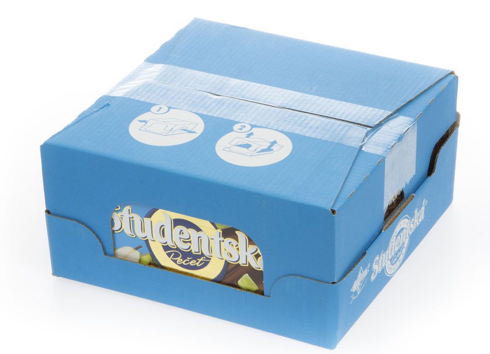 - Mléčná čokoláda 64 % s arašídy 13 %, želé 13 % a kousky s chutí hrušek 10 %.