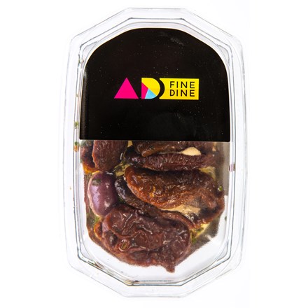 - sušená rajčata 48 %, SÝR 29 % (MLÉKO, SMETANA, tapiokový škrob, jedlá sůl, sýrařské kultury), řepkový olej 20 %, olivy Kalamata s peckou, petržel, jedlá sůl, vinný ocet (antioxidant: OXID SIŘIČITÝ), regulátor kyselosti: kyselina citronová, byliny, česnek, antioxidant: kyselina