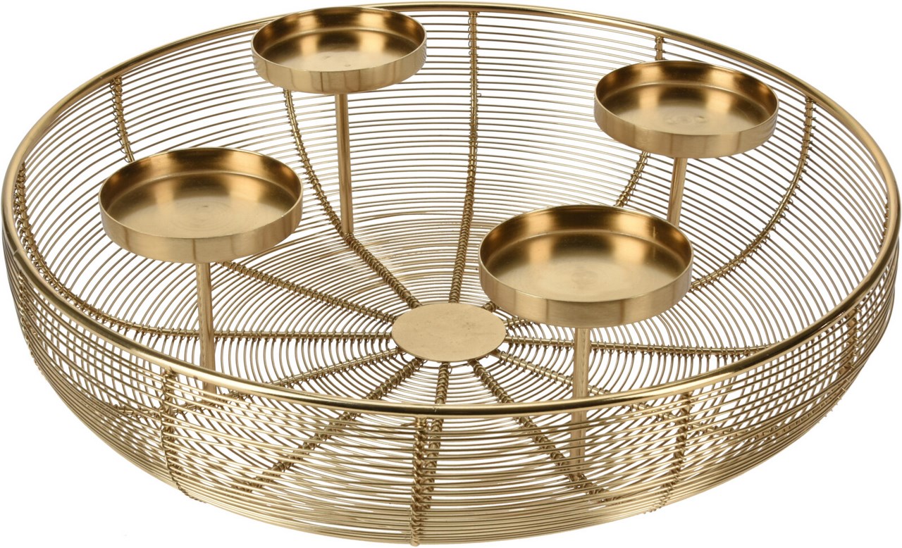 Svícen na 4 svíčky 36 cm kov zlatá 1 ks