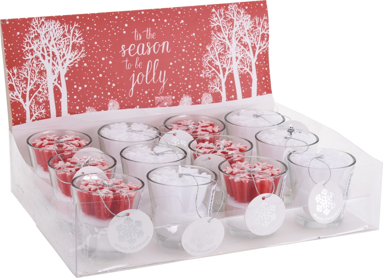 Svíčka ve skle 6cm červeno-bílá 1 ks