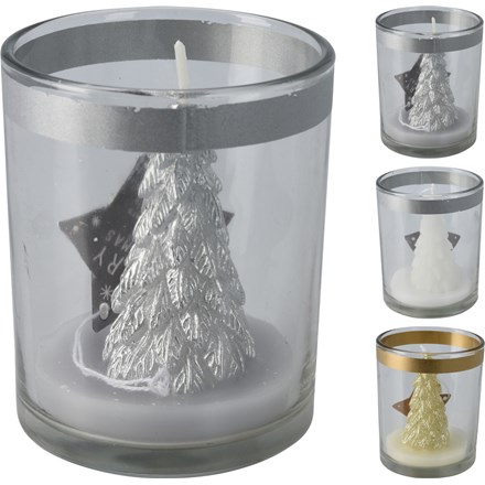 Svíčka ve skle stromeček 3ASS 1 ks