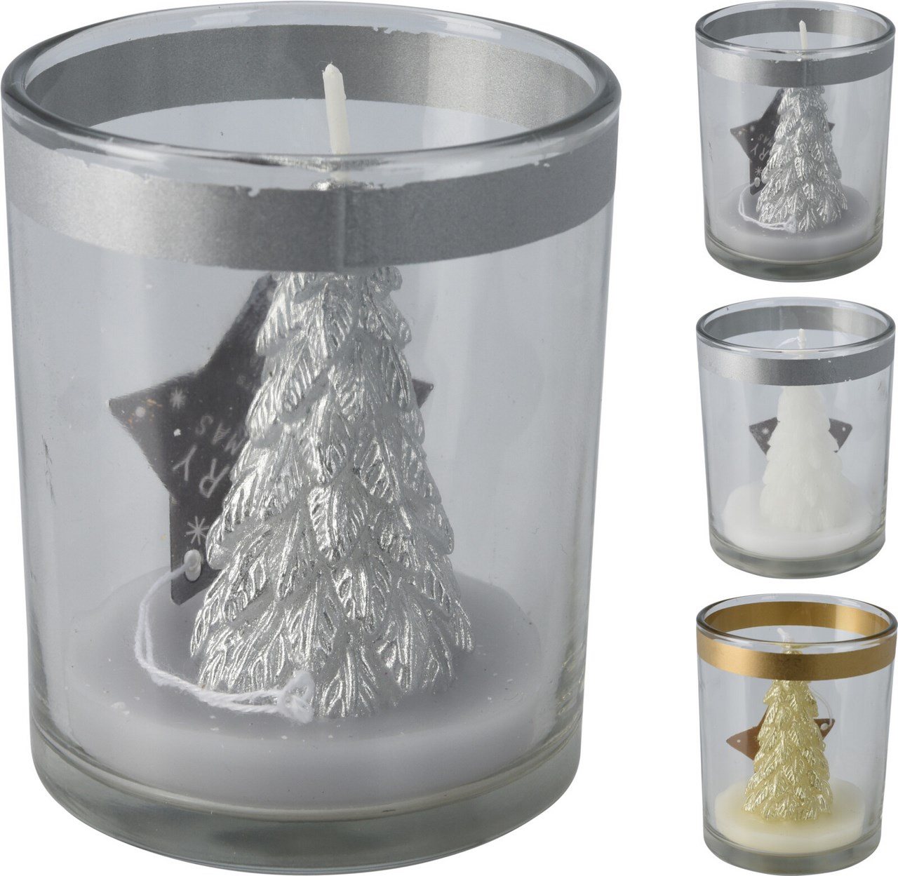 Svíčka ve skle stromeček 3ASS 1 ks