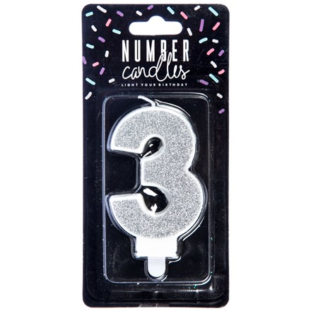 PARTY DECO Svíčka číslice "3" stříbrná 7 cm 1 ks