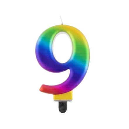 Svíčka - číslice "9" duhová 8cm 1 ks