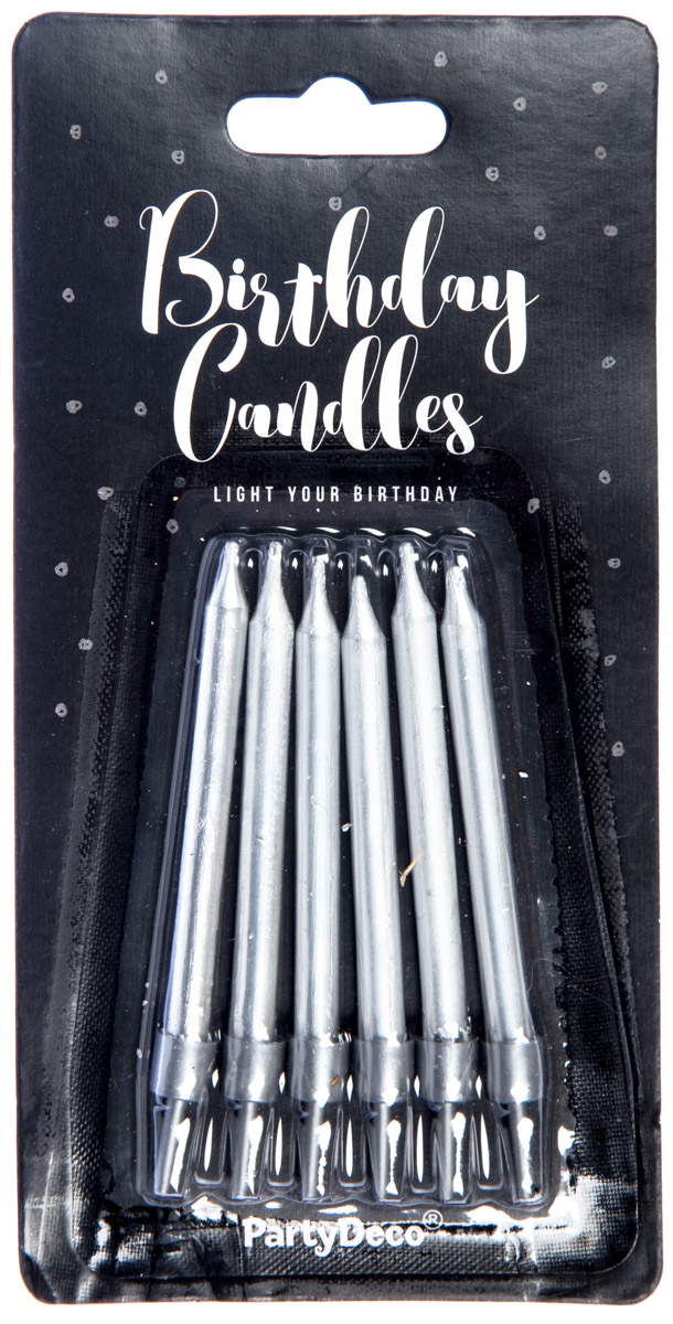 PARTY DECO Svíčky stříbrné se stojánkem 6 cm 6 ks