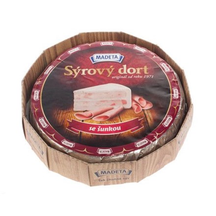 - SÝRY, voda, MÁSLO, šunka 8 % (vepřová kýta 60 %, voda, jódovaná dusitanová solící směs konzervant dusitan sodný, modifikovaný škrob, cukernaté látky, zahuš'tovadlo karagenan, stabilizátor E 451,antioxidant izoaskorbát sodný), tavící soli (E 339, E 450, E 452)