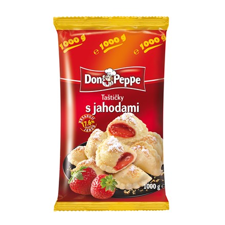 - PŠENIČNÁ mouka, pitná voda, jahody 17,6%, bramborové těsto (PŠENIČNÁ mouka, sušené bramborové vločky, PŠENIČNÁ krupice, bramborový škrob, jedlá sůl, kurkuma), cukr, řepkový olej, škrob, bramborová vlálknina.