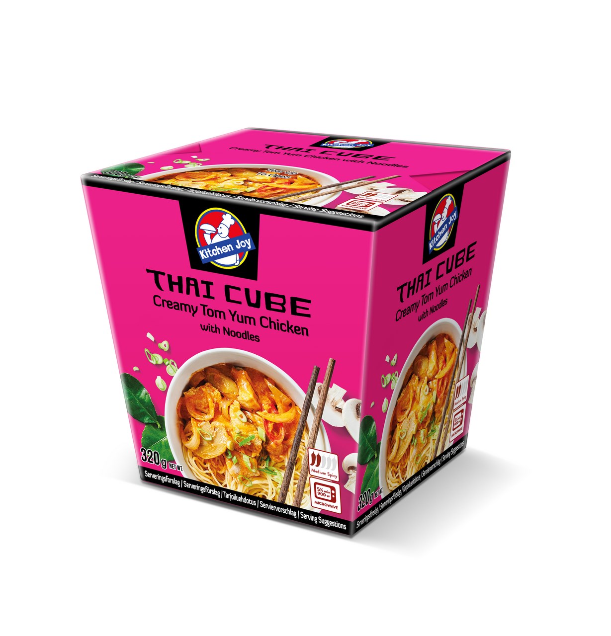 - Kuřecí maso v Creamy Tom Yum omáčce s nudlemi je hotové mražené jídlo s unikátní chutí a rychlou, jednoduchou přípravou v mikrovlnné troubě (cca 5min.) bez předchozího rozmrazování. Je uvařené podle tradiční thajské receptury z prvotřídních místních (thajských) surovin. Představuje v současnosti nejdostupnější kulinářský zážitek autentické asijské kuchyně na trhu.
