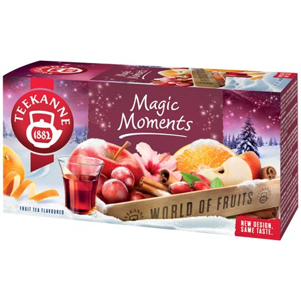 - Magic Moments - lahodný, ovocno-bylinný čaj, aromatizovaný. Vychutnejte si jedinečnou směs TEEKANNE World of Fruits "Magic Moments” - neobyčejná směs na slunci uzrálého ovoce s chutí pomerančů, rumu a hroznů. Nechte se okouzlit lahodnou chutí této magické kombinace.