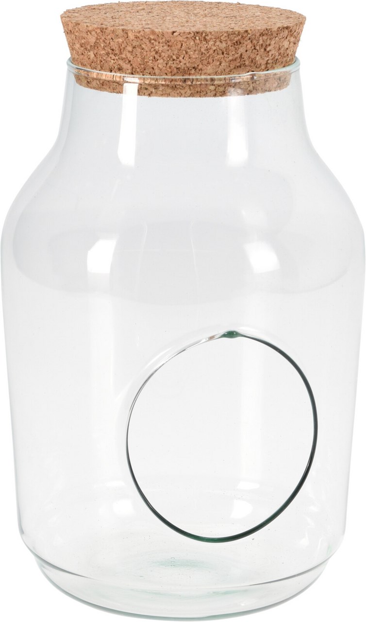 Skleněná nádoba s otvorem a korkem 1 ks