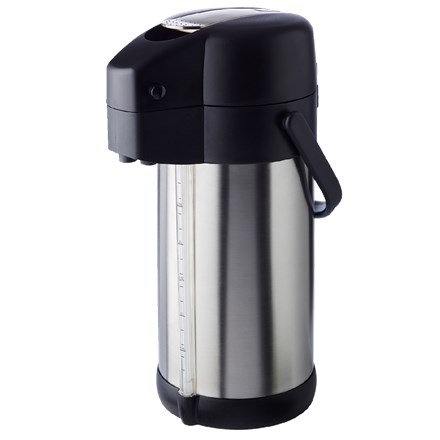 - Air pot -PREMIUM- O 15 cm, H: 37 cm, 3 litres 18/8stainless st.,polypropylen satin, double-walled carrying handle, screw cap, pump mechanism fill level indicator for hot and cold beverages including 4 beverage signs for 24 cups